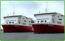 The new Norfolkline Mersey Viking 27'000gts and can carry up to 700 passengers in her 2 lounges (passenger certificate is 970), and can sleep up to 480 passengers in cabins. She has 4 vehicle decks and room for around 200 lorries. Her maximum speed is 27 knots, but usually sails at 23 knots maximum. She sails on the Belfast–Birkenhead route on charter with her marginally older sister ship the Lagan Viking.
